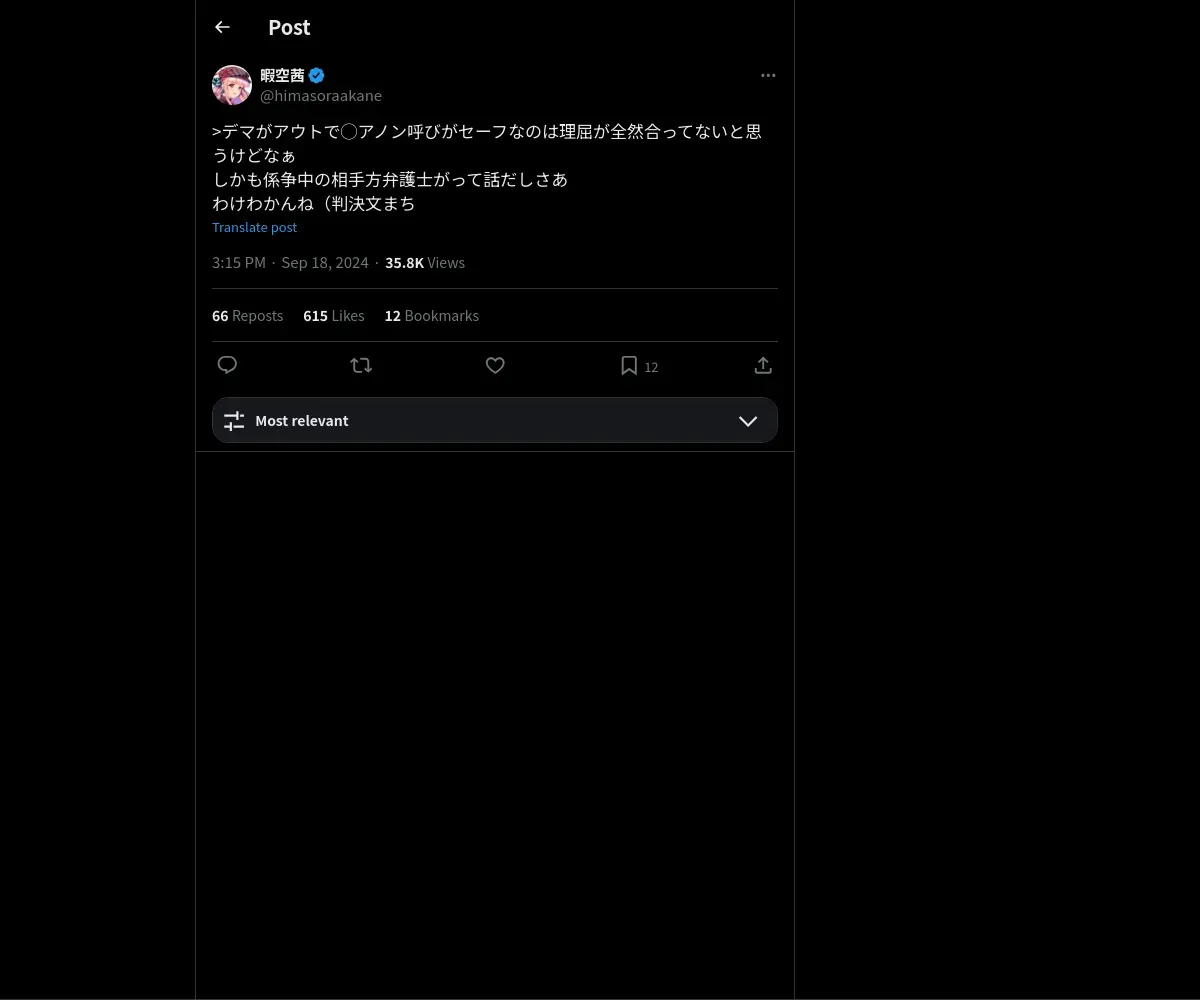 取得元URL: https://x.com:443/himasoraakane/status/1836287855951499765