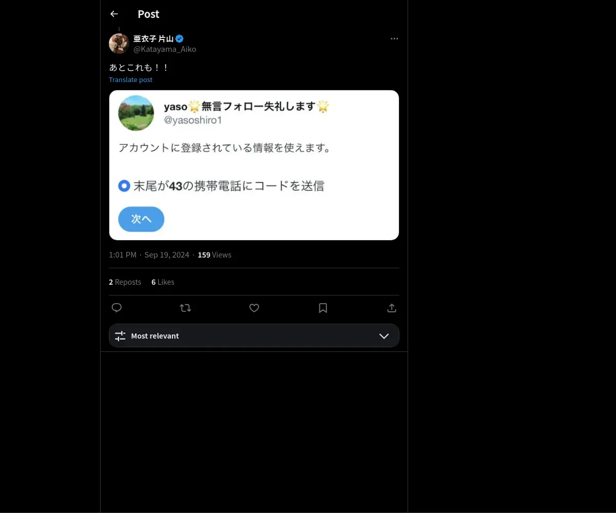 https://x.com:443/Katayama_Aiko/status/1836616489824288904?t=E4_wyD3mi-yPdSfvARChww&s=19