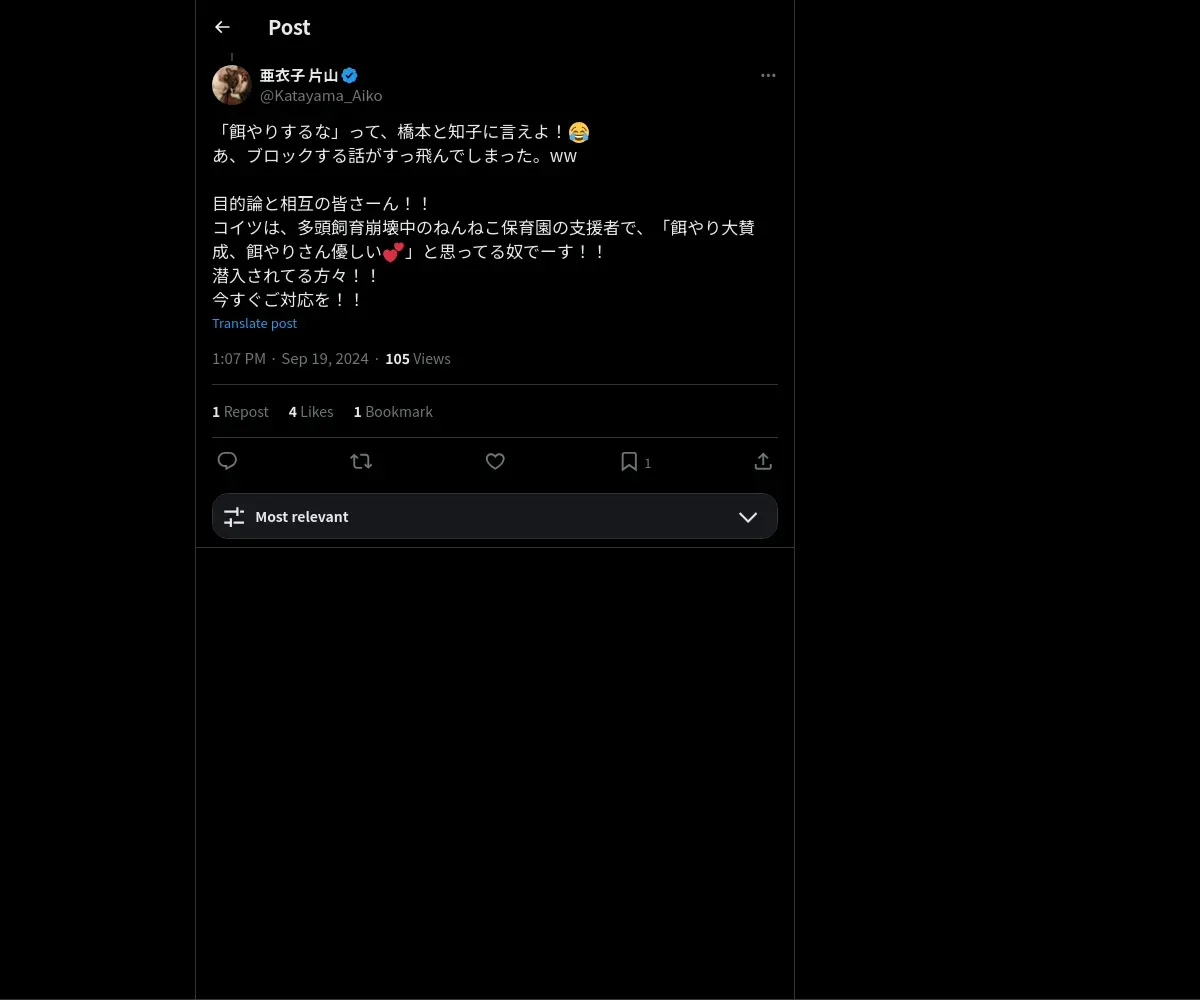 https://x.com:443/Katayama_Aiko/status/1836617985928409445?t=mxmUScGWi5Xi9UE1bUfAOQ&s=19