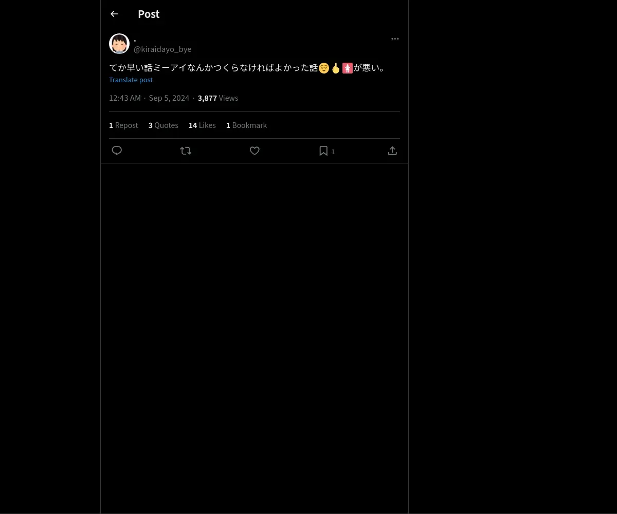 https://x.com:443/kiraidayo_bye/status/1831357472474546415?t=TxaHQwxdZMkO8rXwoHJALQ&s=19