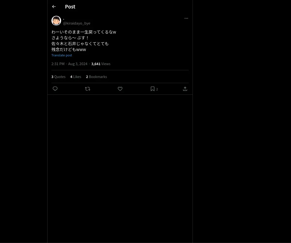 https://x.com:443/kiraidayo_bye/status/1819607099388956843?t=JahjCNKkVd7UBO6rCC0DkA&s=19