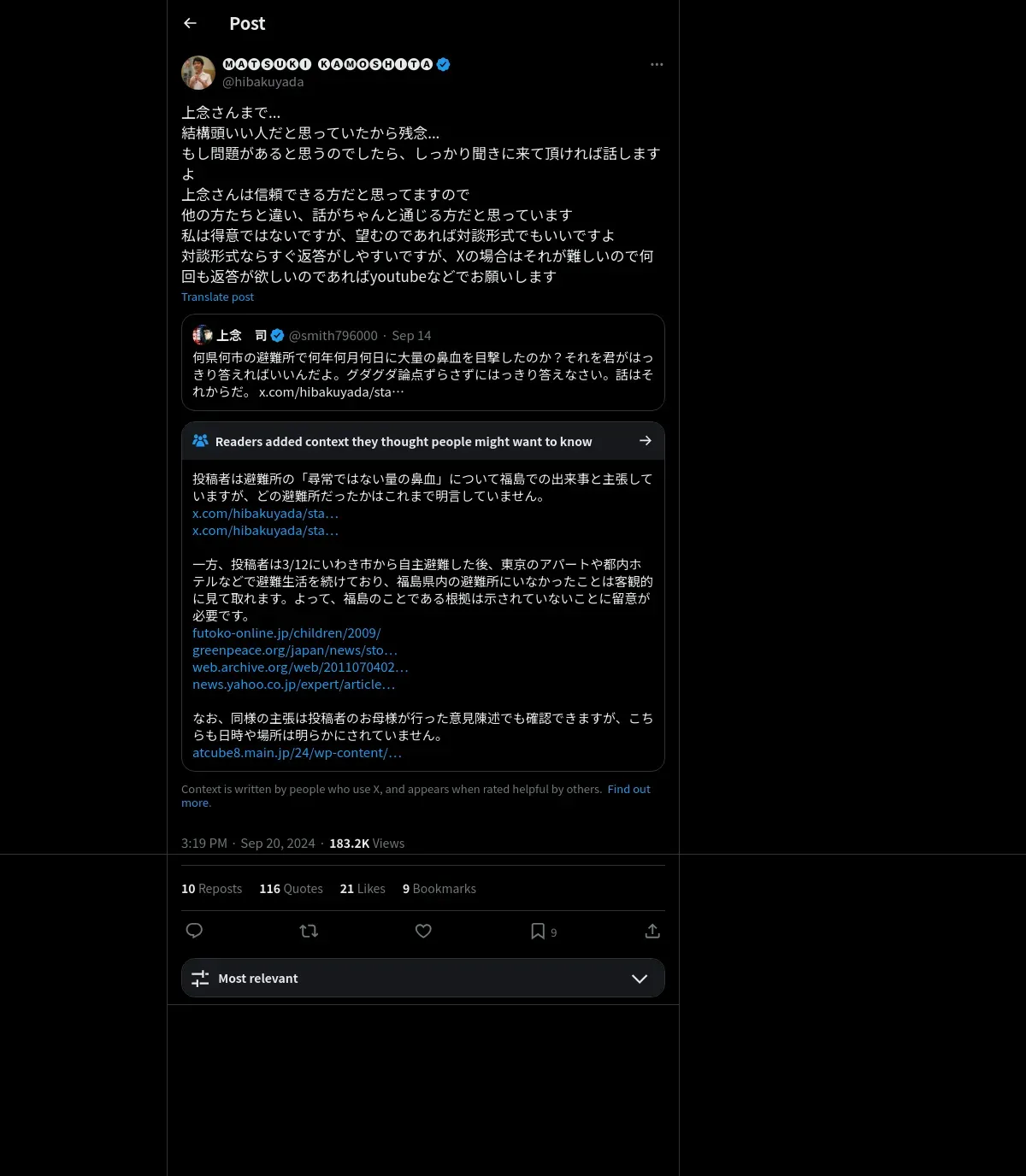 取得元URL: https://x.com:443/hibakuyada/status/1837013646163202067