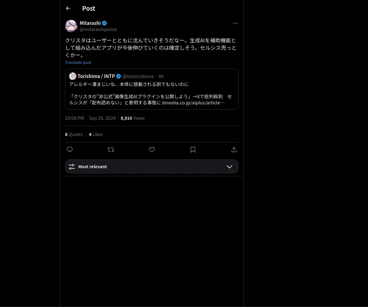 取得元URL: https://x.com:443/mitarashiponta/status/1837116538572394632