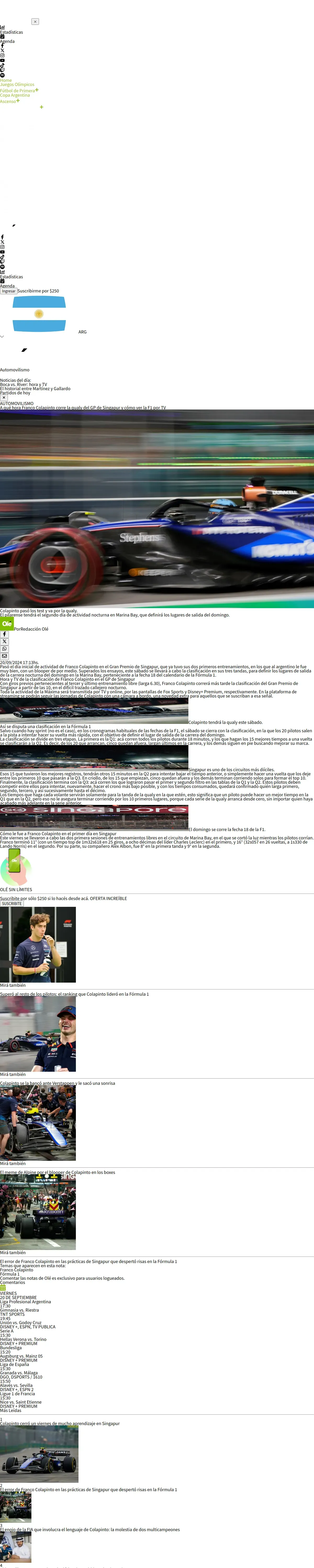 取得元URL: https://www.ole.com.ar:443/autos/f1-hora-franco-colapinto-qualysingapur-formula1-clasificacion-ver-tv_0_NpXF1jwrGy.html