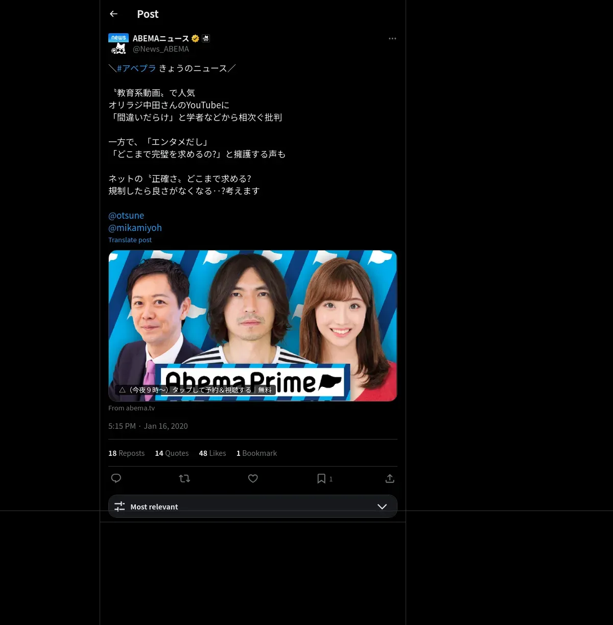 取得元URL: https://x.com:443/News_ABEMA/status/1217721949024968706