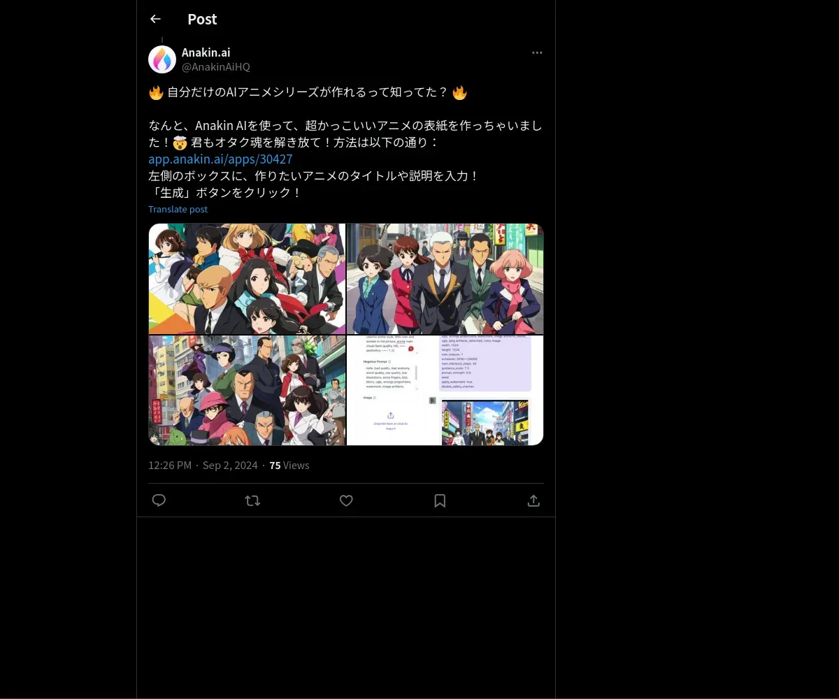 取得元URL: https://x.com:443/AnakinAiHQ/status/1830447277368045738