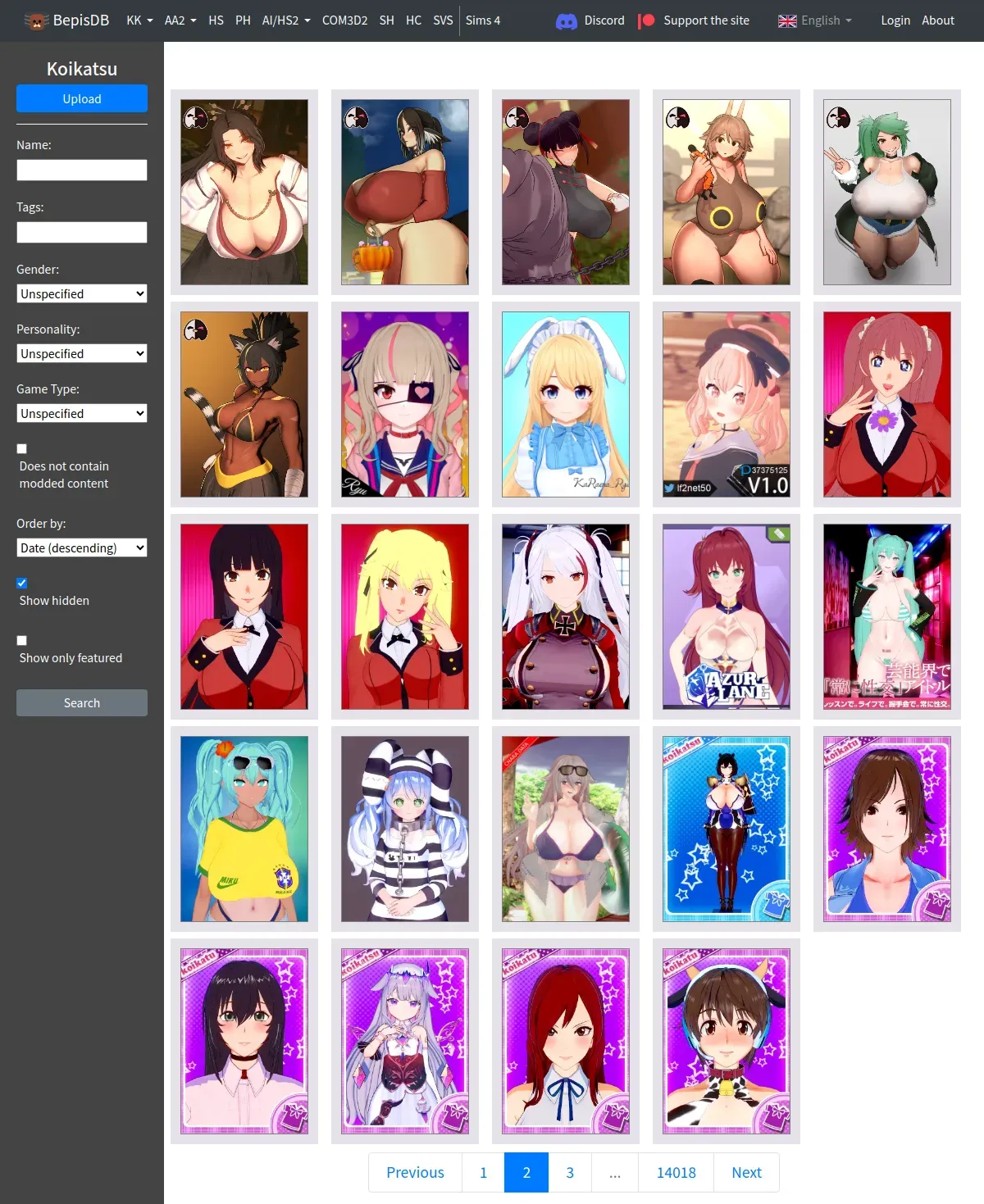 http://web.archive.org/db.bepis.moe/koikatsu?hidden=true&page=2