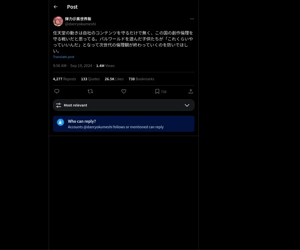 https://x.com:443/danryokumeshi/status/1836569992650985680