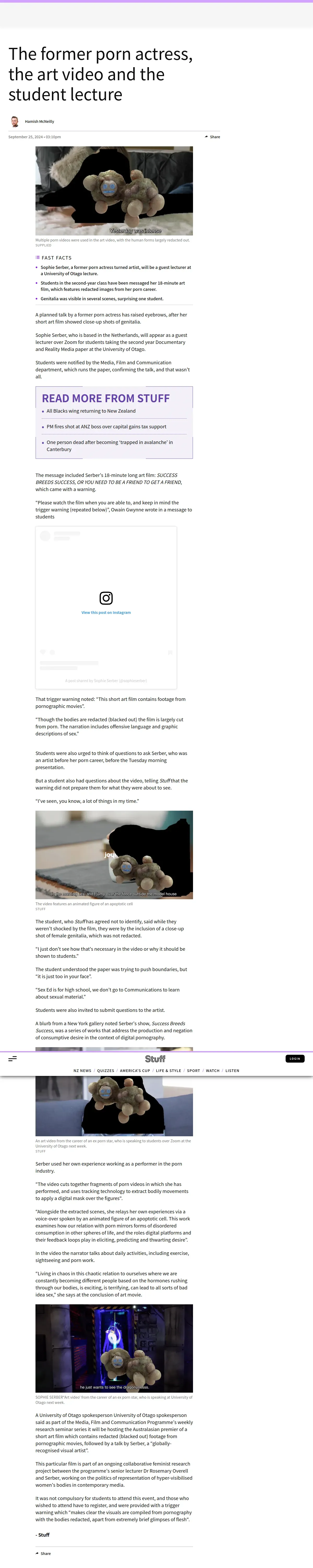 https://www.stuff.co.nz:443/nz-news/350428527/former-porn-actress-art-video-and-student-lecture