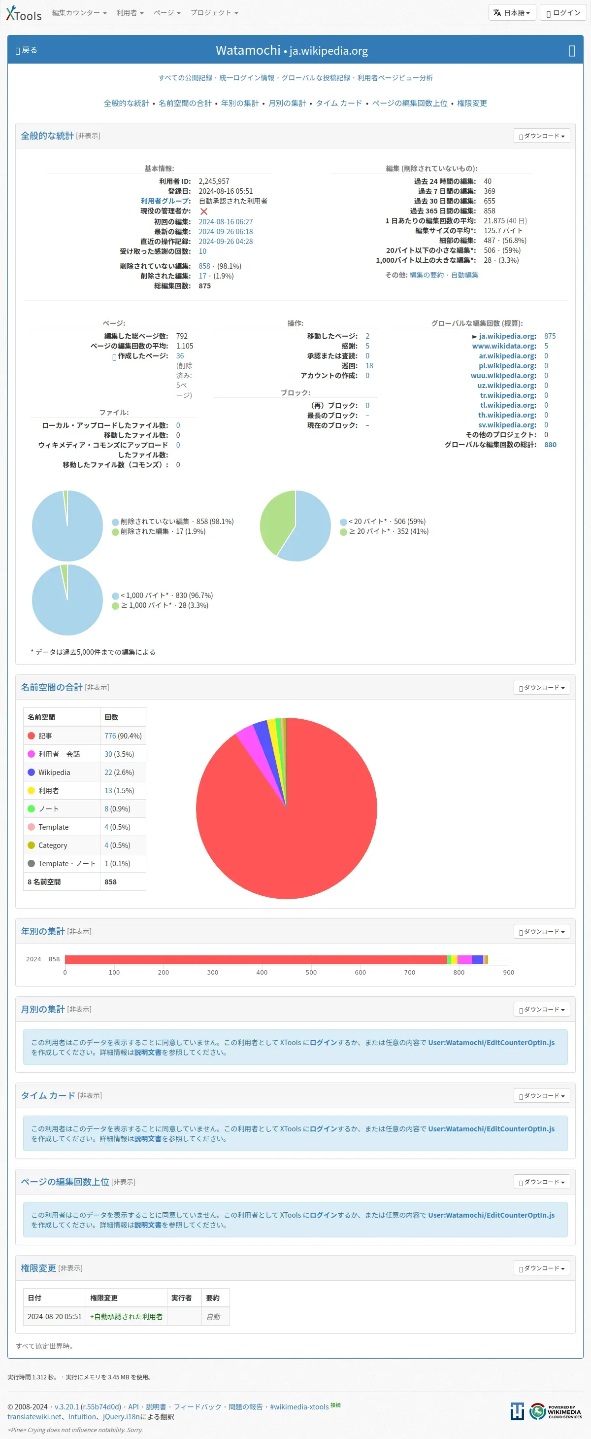 https://xtools.wmcloud.org:443/ec/ja.wikipedia.org/Watamochi?uselang=ja