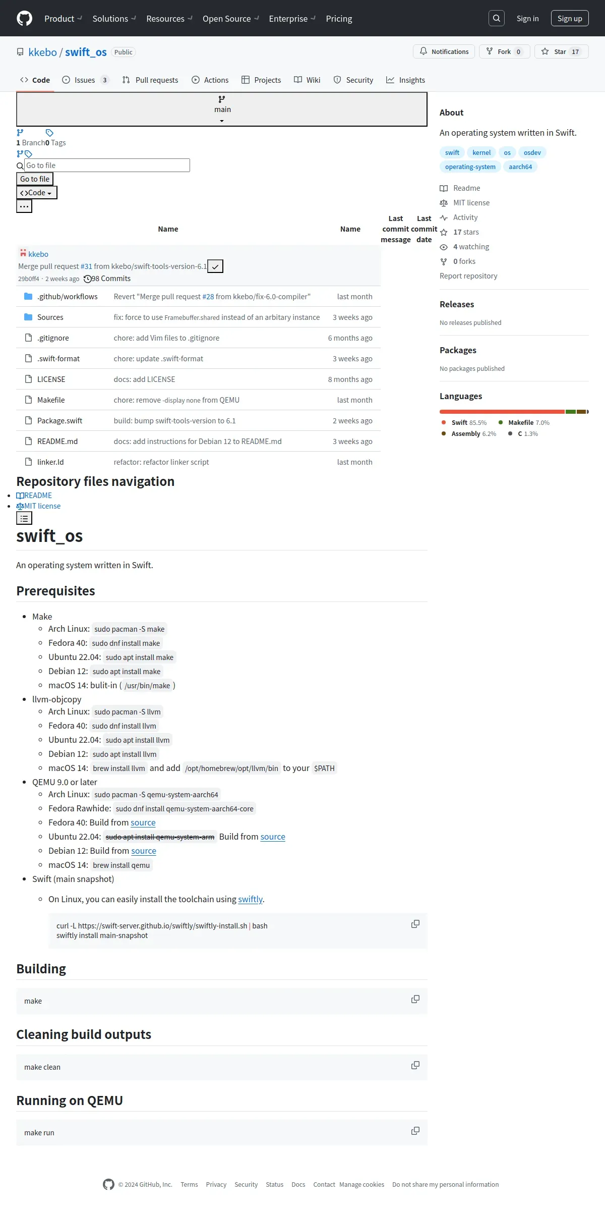 http://github.com/kkebo/swift_os