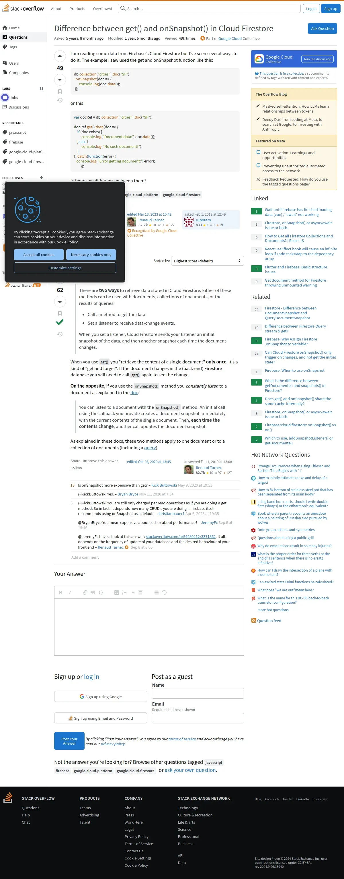 取得元URL: https://stackoverflow.com:443/questions/54479892/difference-between-get-and-onsnapshot-in-cloud-firestore