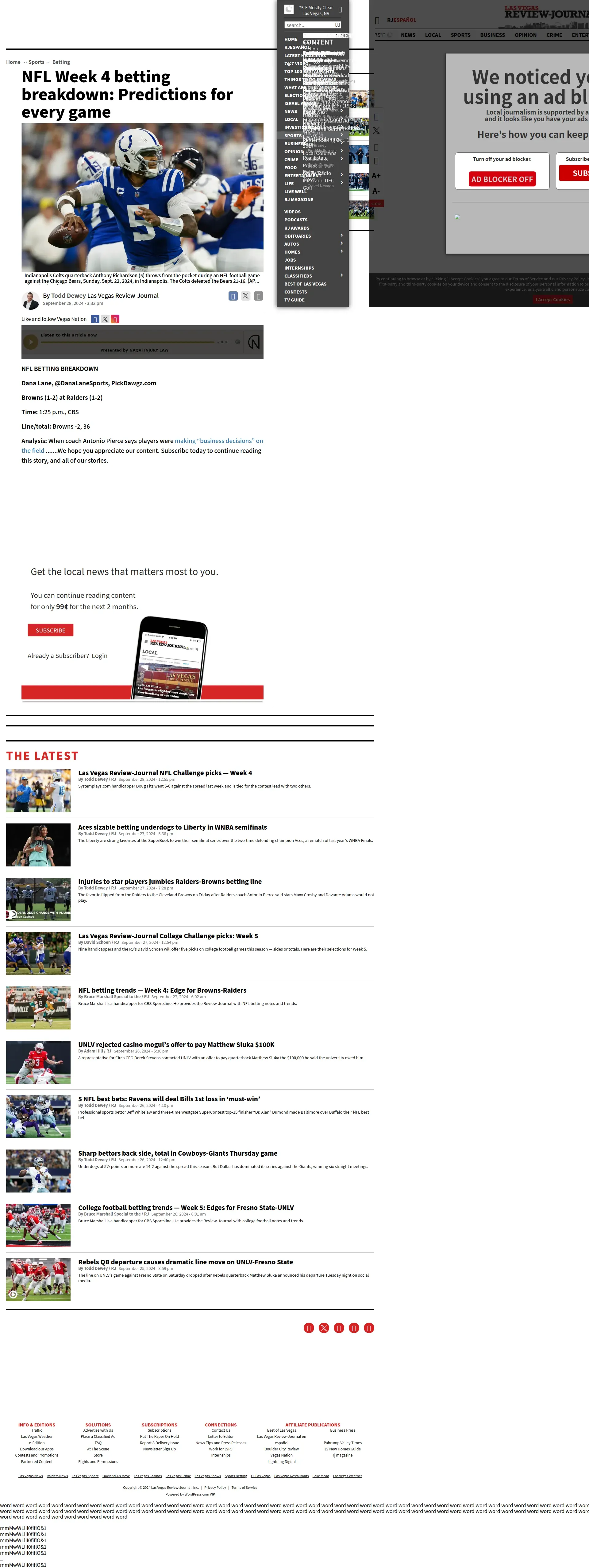https://www.reviewjournal.com:443/sports/betting/nfl-week-4-betting-breakdown-predictions-for-every-game-3179115/?utm_campaign=widget&utm_medium=latest&utm_source=sports&utm_term=NFL%20Week%204%20betting%20breakdown:%20Predictions%20for%20every%20game