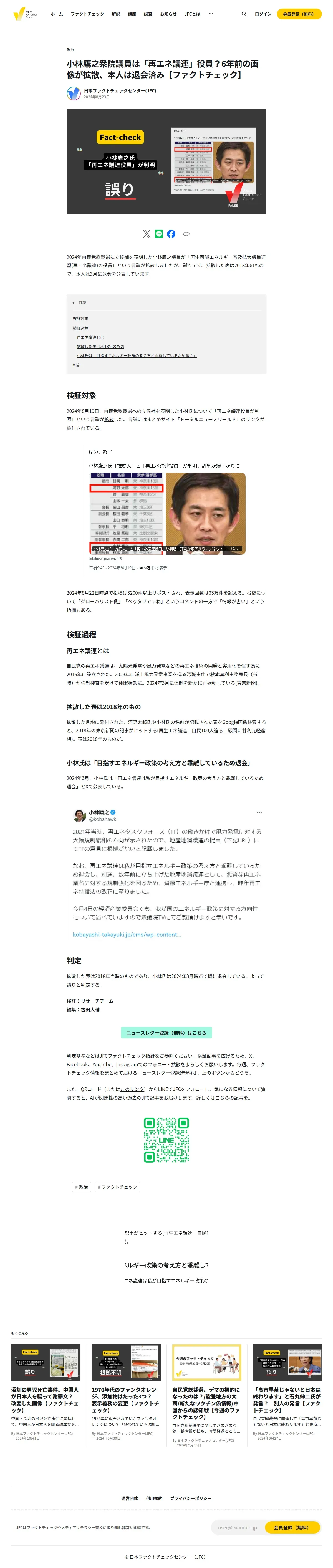 https://www.factcheckcenter.jp:443/fact-check/politics/false-kobayashi-not-renewable-energy-association/