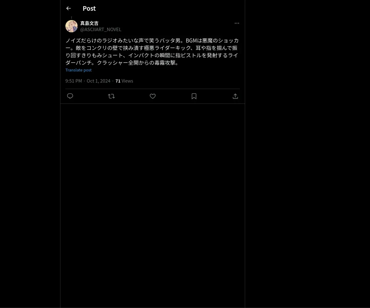 https://x.com:443/ASCIIART_NOVEL/status/1841098578510725264