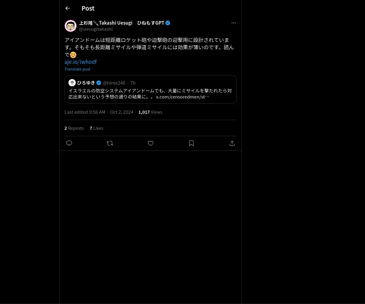 https://x.com:443/uesugitakashi/status/1841281128420040813