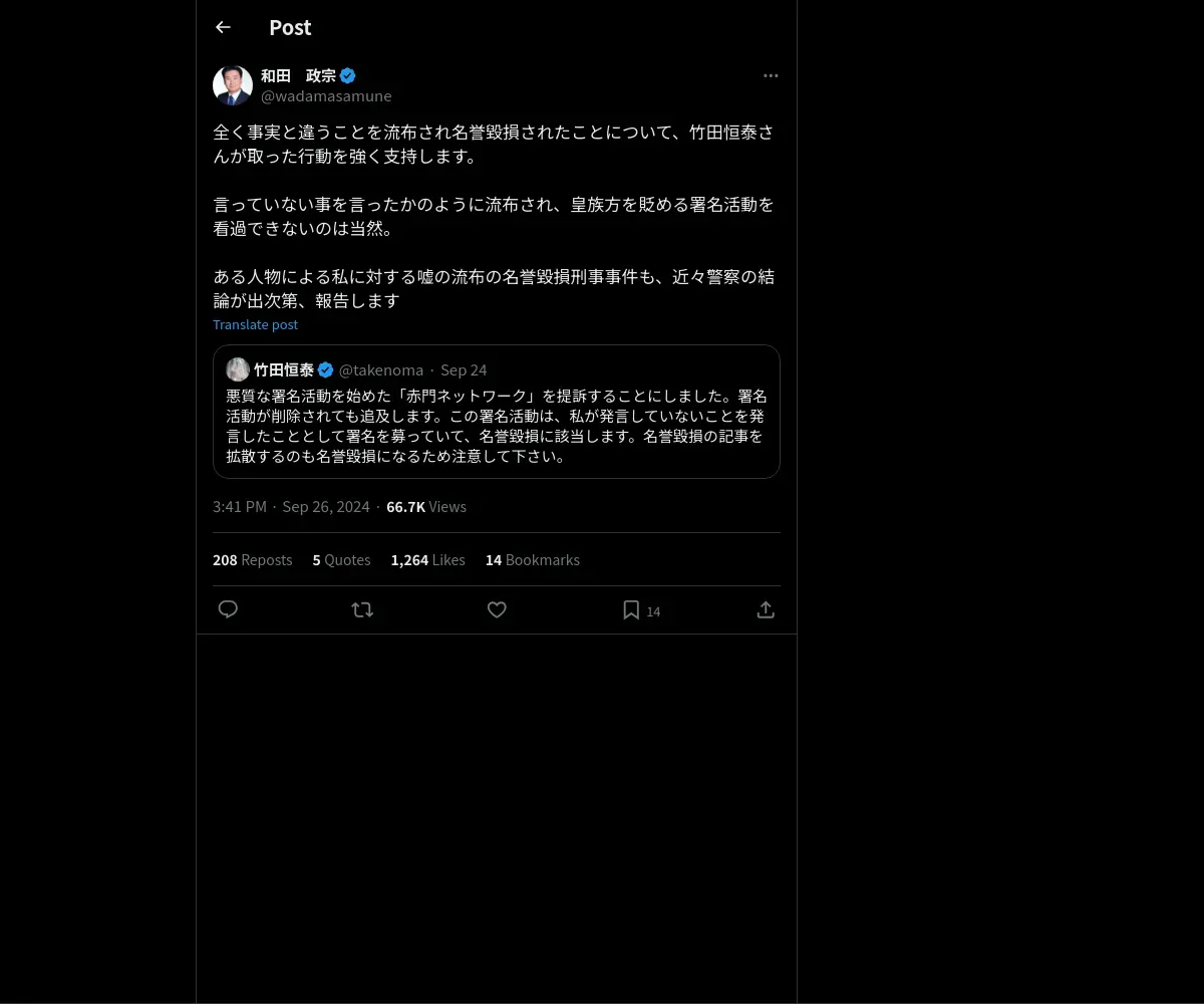 取得元URL: https://x.com:443/wadamasamune/status/1839193655845990544
