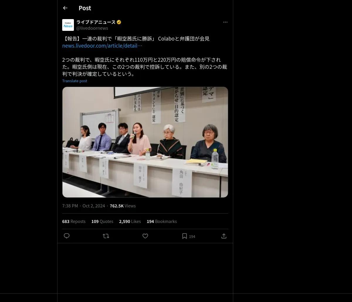 https://x.com:443/livedoornews/status/1841427486061781110
