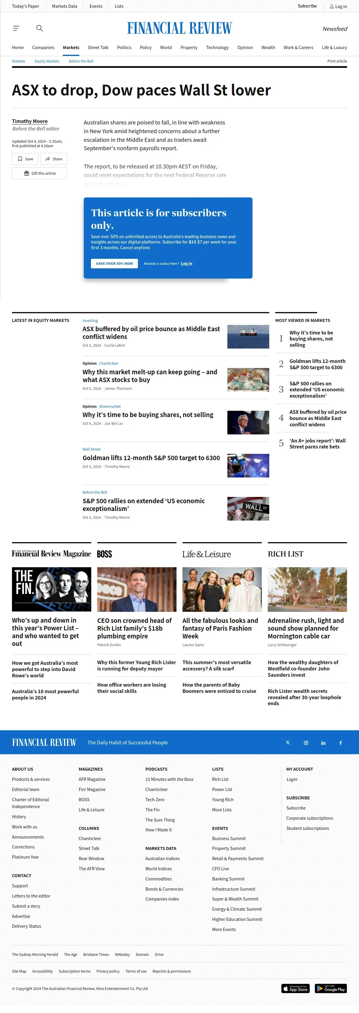https://www.afr.com:443/markets/equity-markets/asx-to-drop-dow-paces-wall-st-lower-as-oil-surges-20241004-p5kfsj