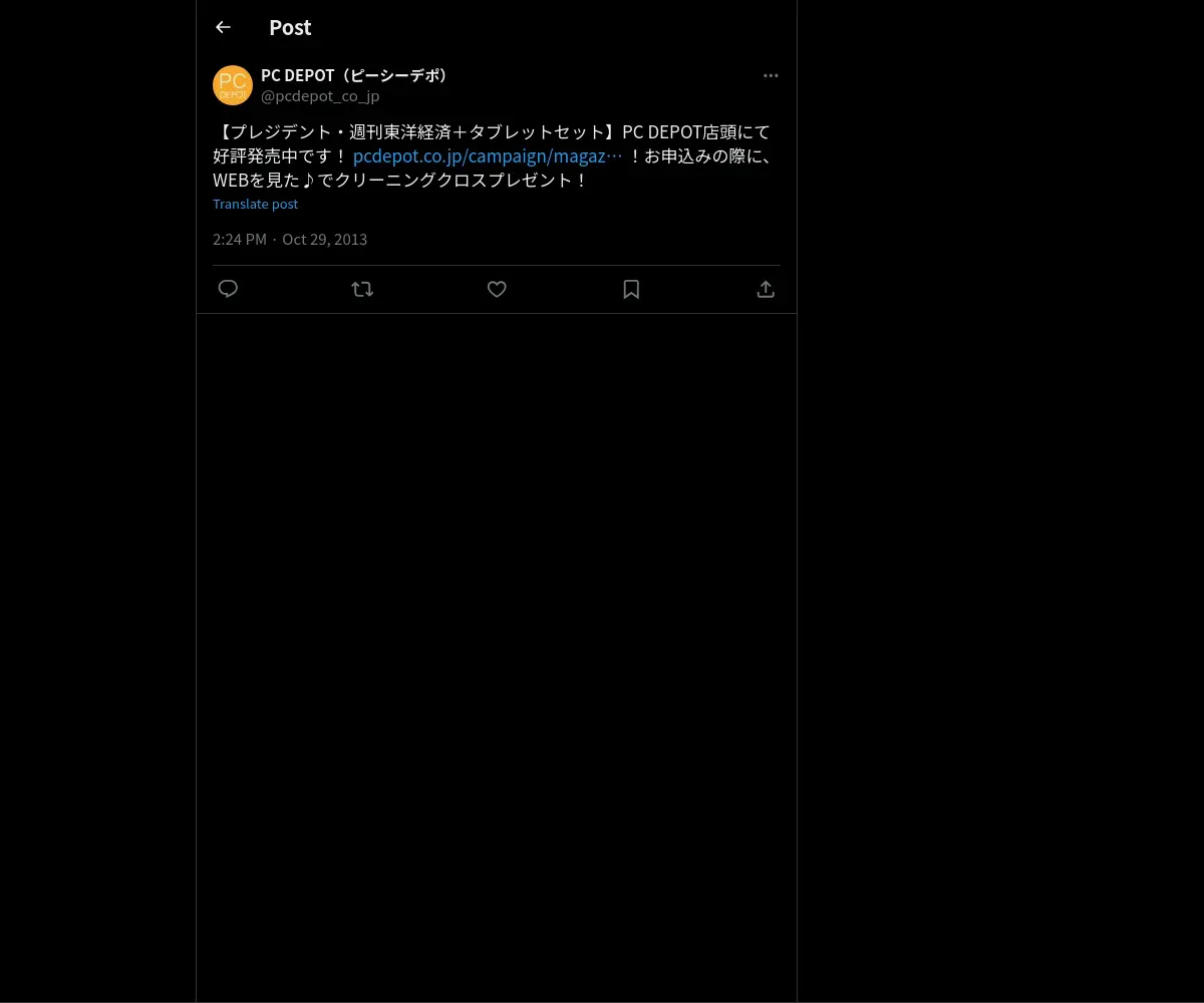 https://x.com:443/pcdepot_co_jp/status/395058584376987648
