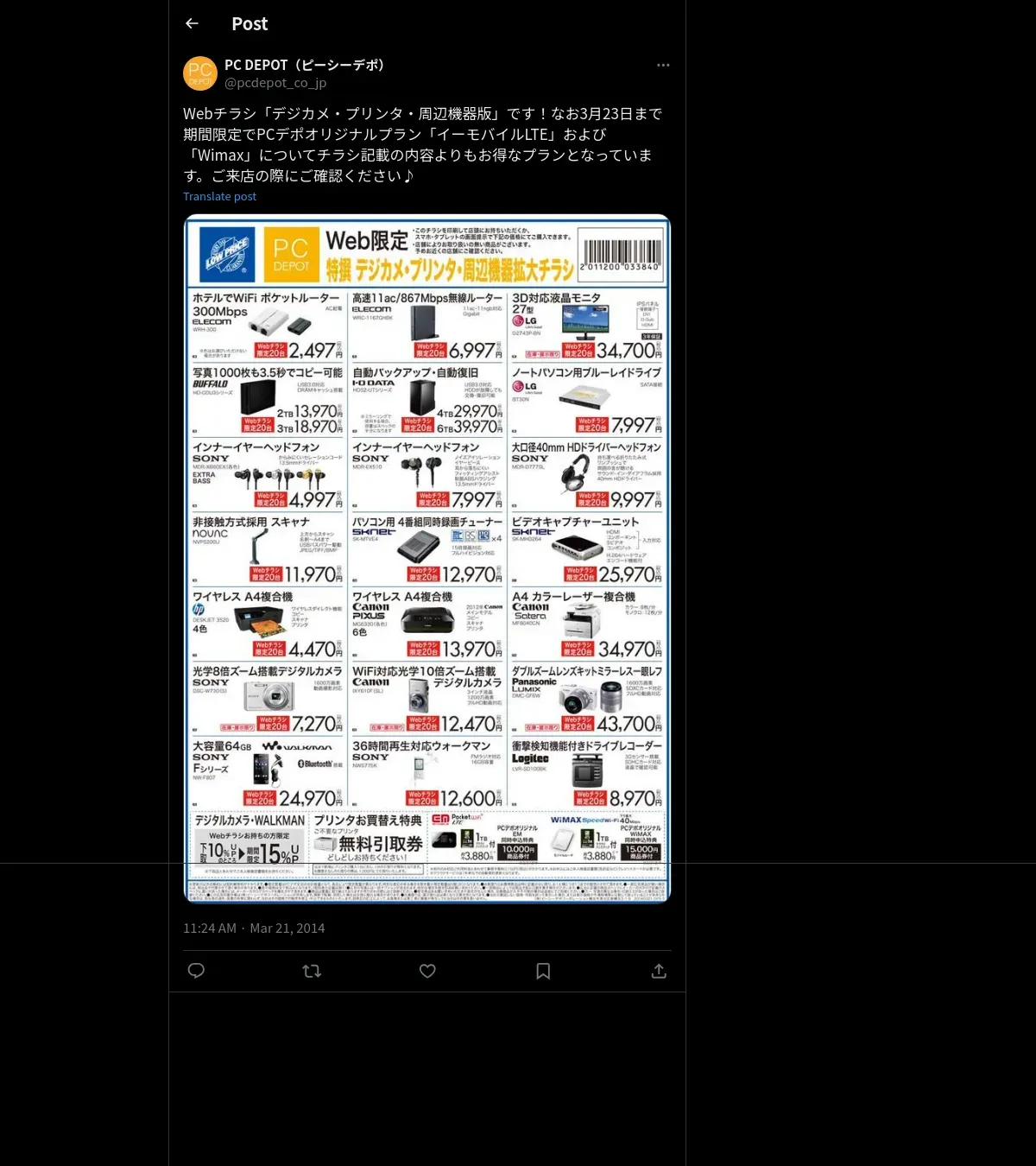 https://x.com:443/pcdepot_co_jp/status/446834817439518721