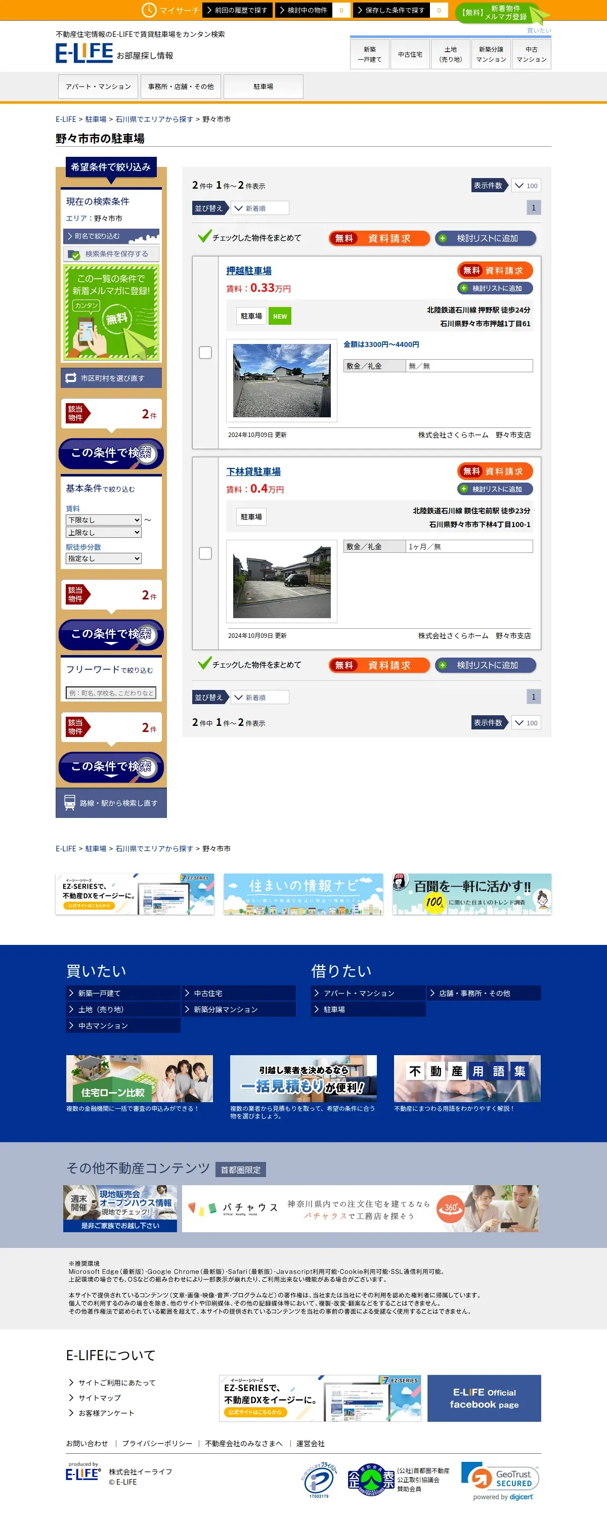 取得元URL: https://www.e-life.jp:443/chintai/parking/area/ishikawa/nonoichishi/1/