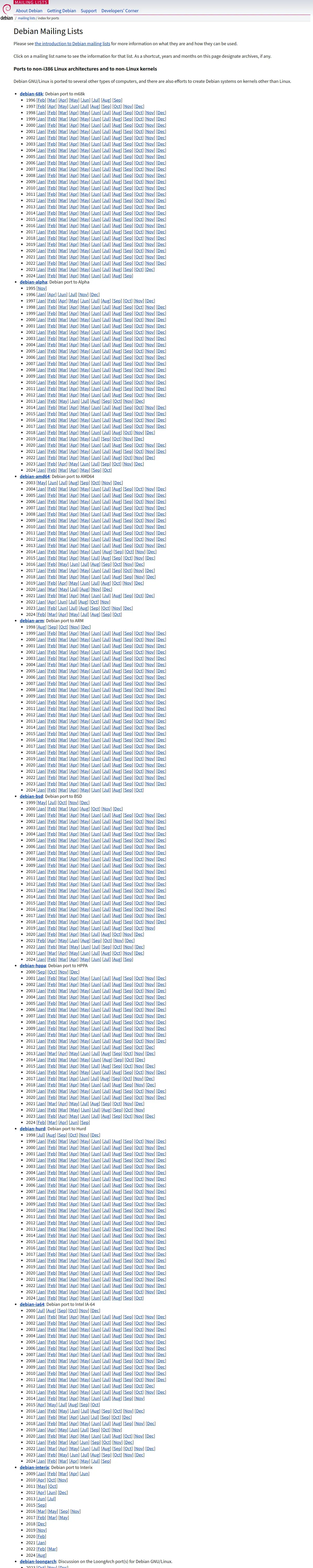 http://lists.debian.org/ports.html
