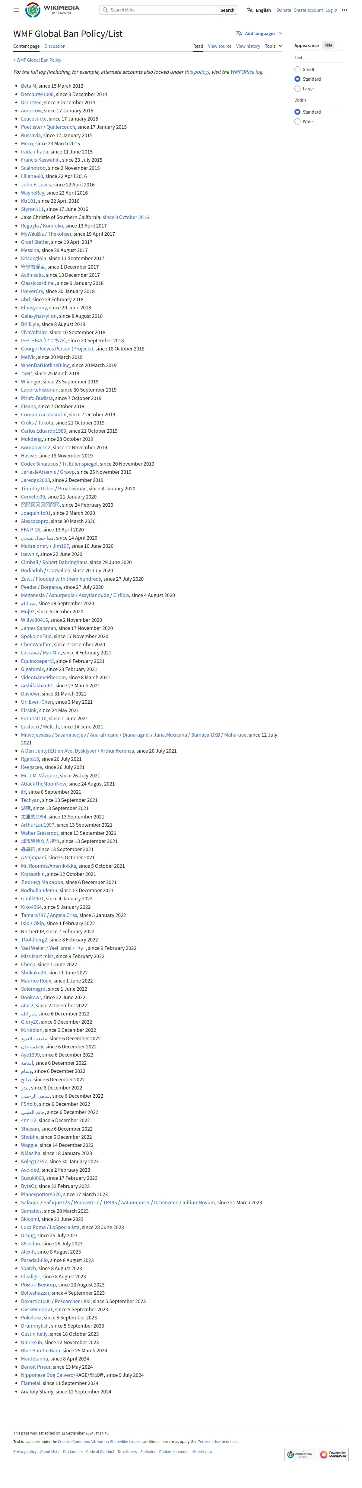 https://meta.wikimedia.org:443/wiki/WMF_Global_Ban_Policy/List