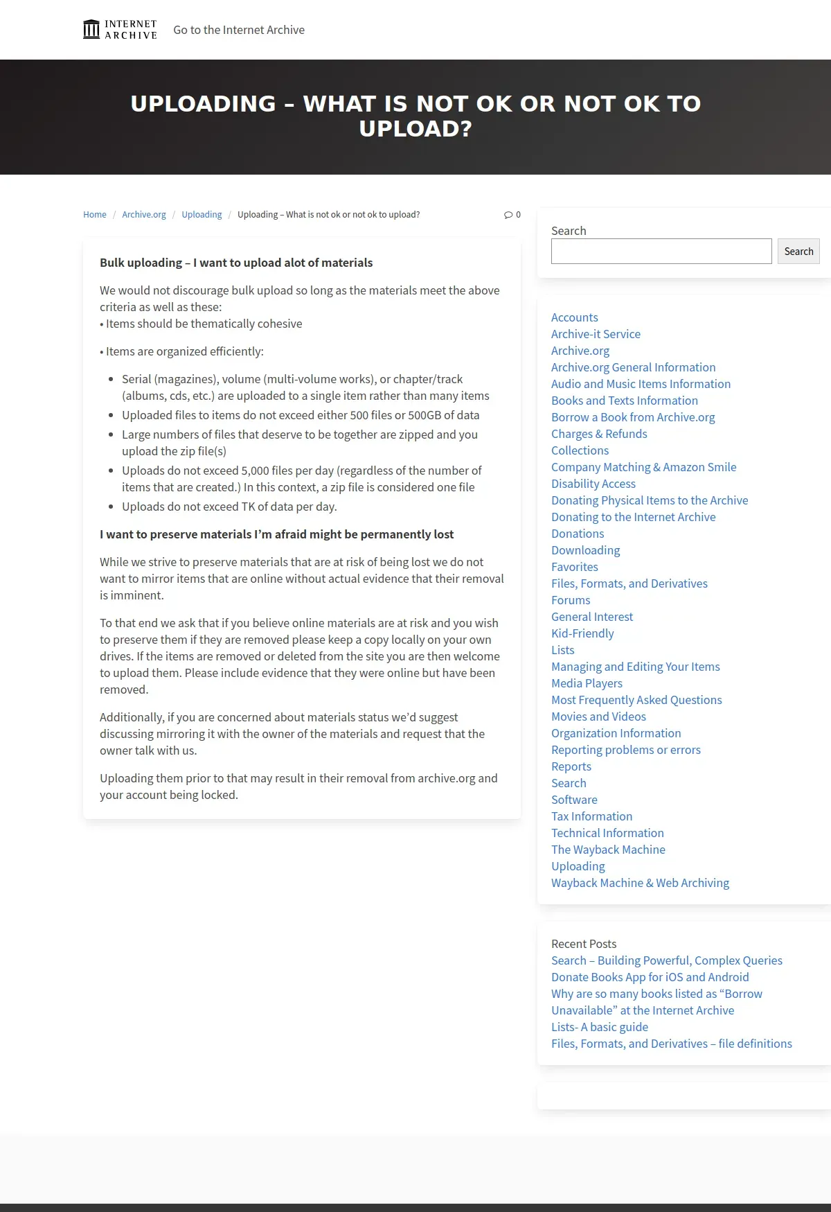 https://help.archive.org:443/help/uploading-what-is-not-ok-or-not-ok-to-upload/
