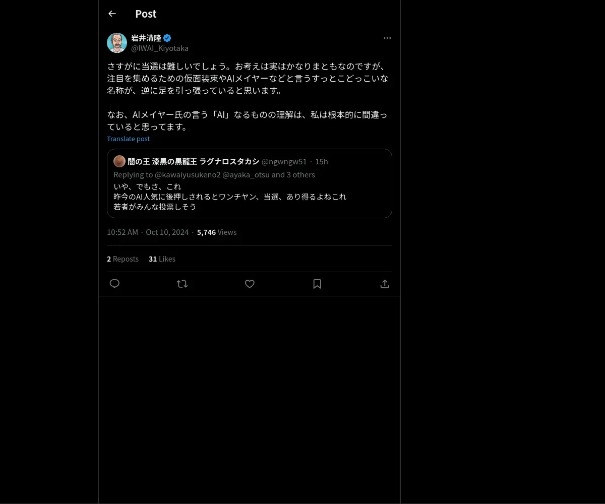 https://x.com:443/IWAI_Kiyotaka/status/1844194370930782258
