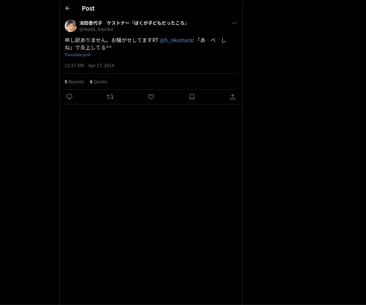 https://x.com:443/ikeda_kayoko/status/456456459094482945