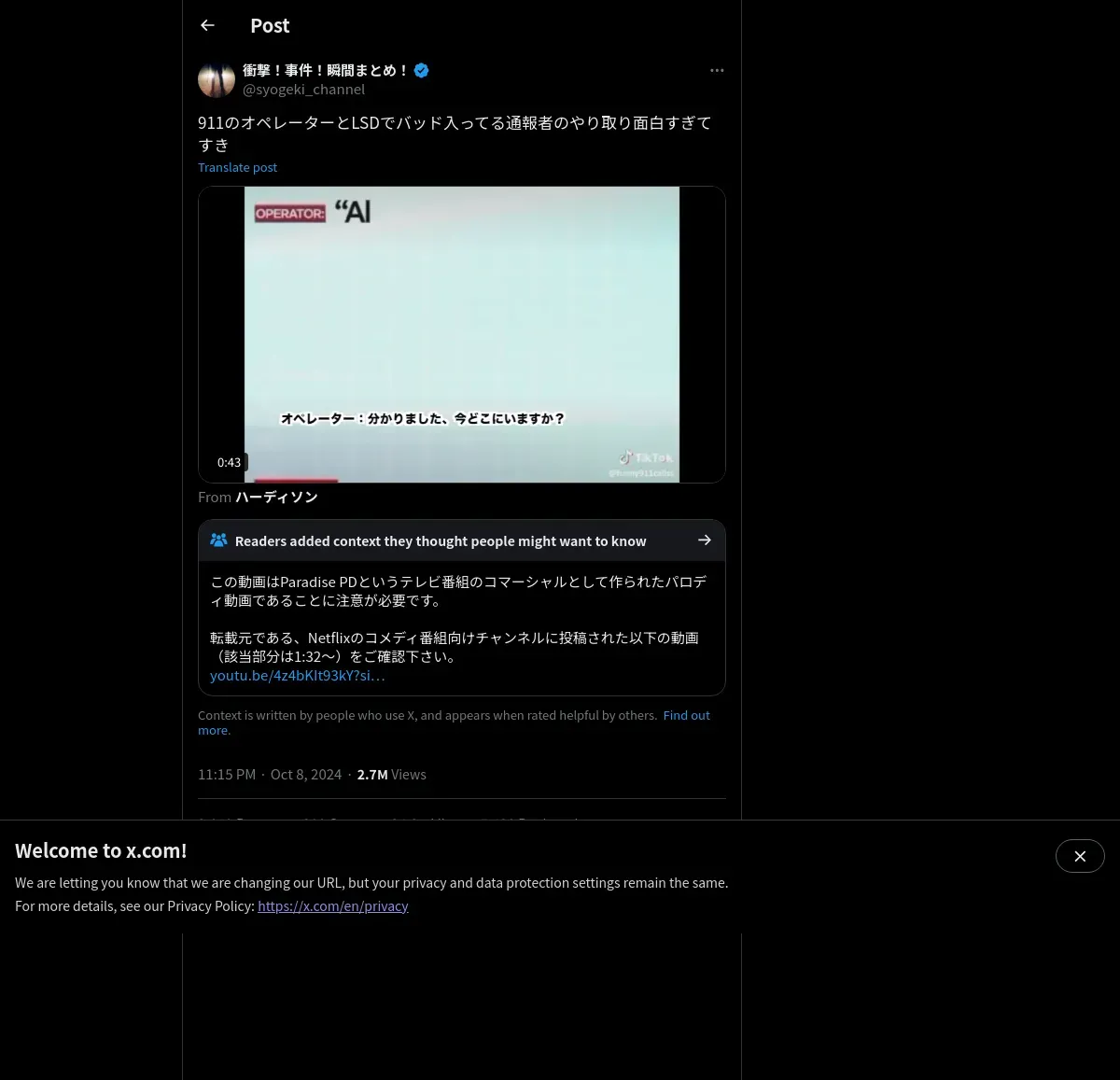 https://x.com:443/syogeki_channel/status/1843656589175337079