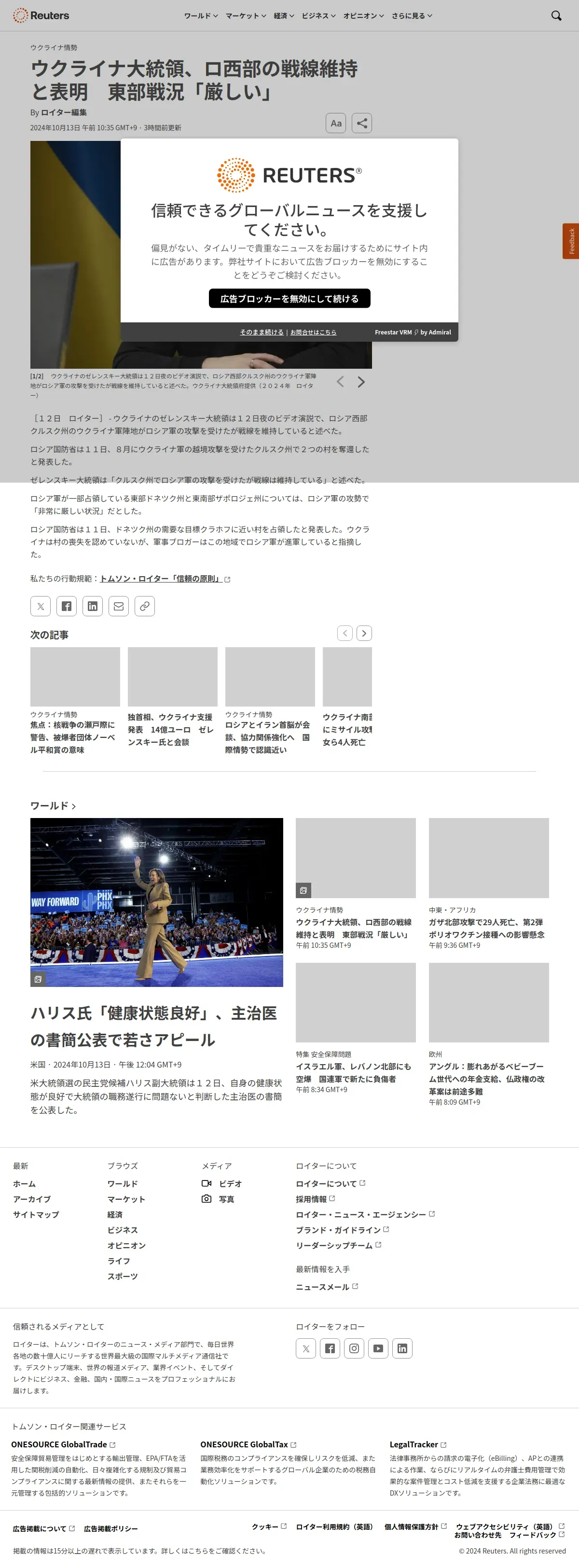 https://jp.reuters.com:443/world/ukraine/4Y6FCCKPDZO3ZAGDVRFKUPE254-2024-10-13/