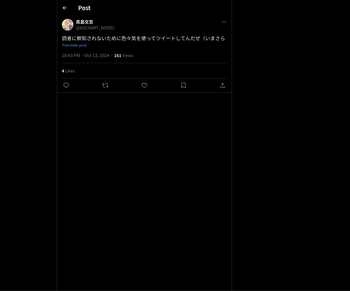 https://x.com:443/ASCIIART_NOVEL/status/1845460228093116446