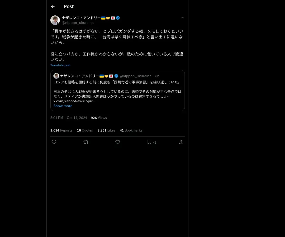 取得元URL: https://x.com:443/nippon_ukuraina/status/1845736557048938691