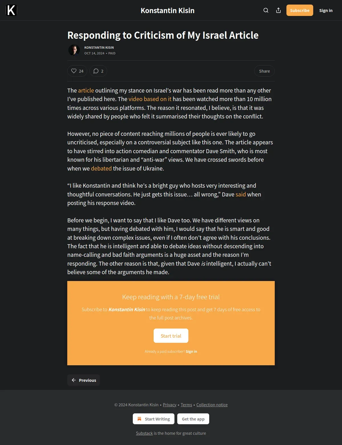 https://www.konstantinkisin.com:443/p/responding-to-criticism-of-my-israel