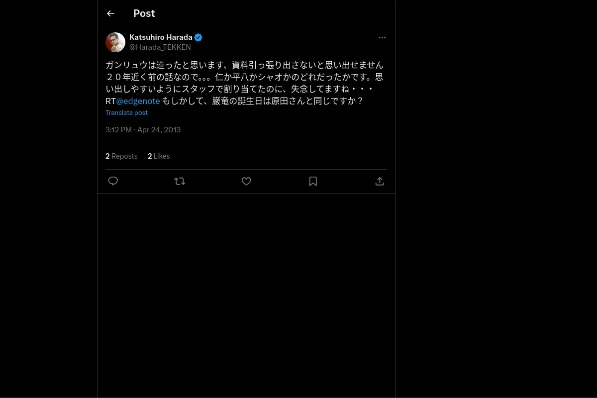 取得元URL: https://x.com:443/Harada_TEKKEN/status/326941623927848960