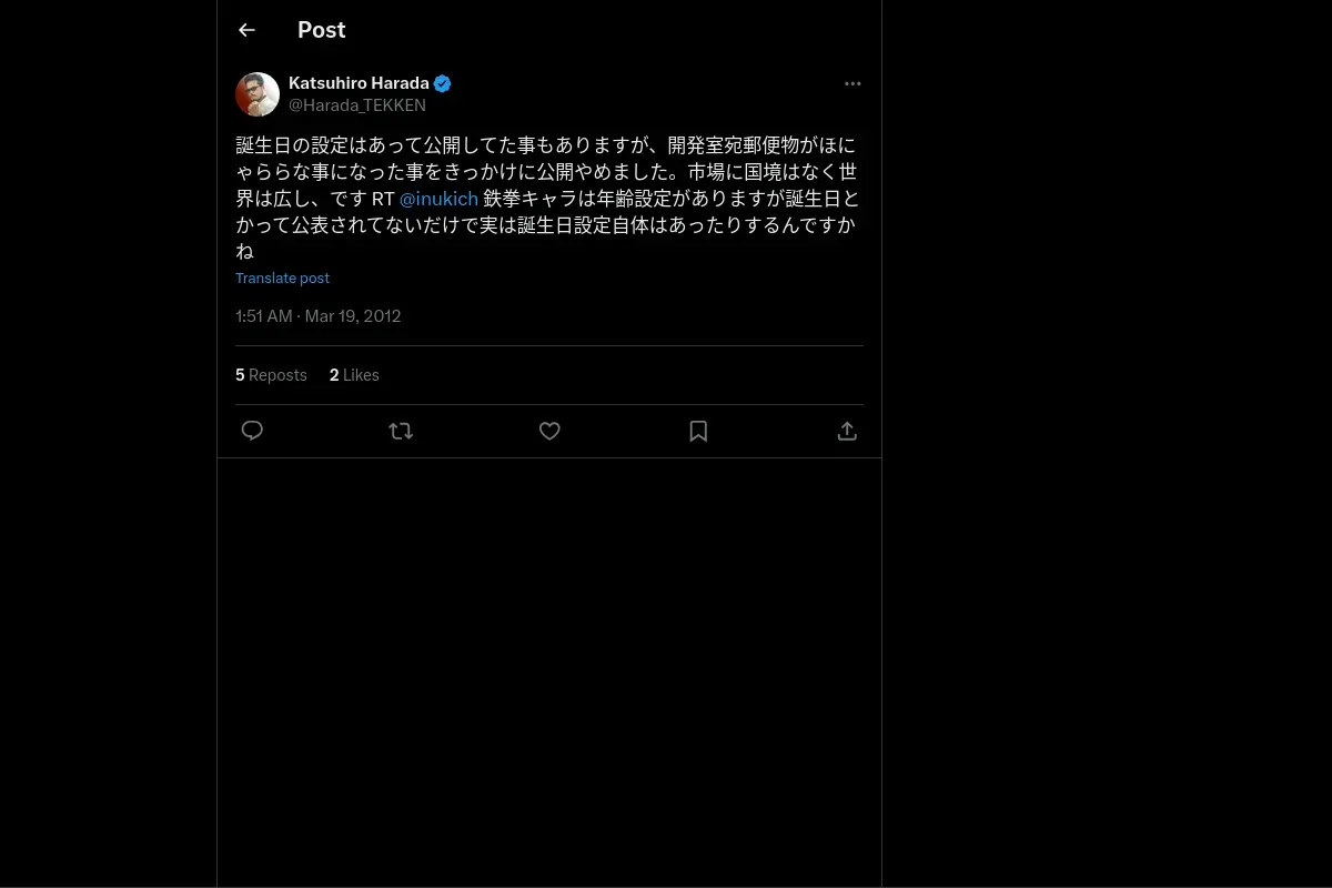 取得元URL: https://x.com:443/Harada_TEKKEN/status/181422609311870976