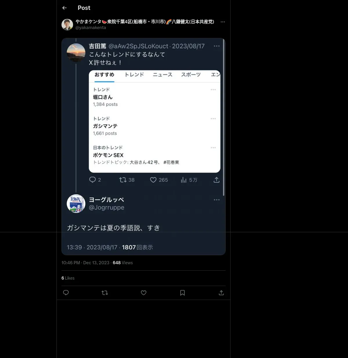 https://x.com:443/yakamakenta/status/1734932792558125221