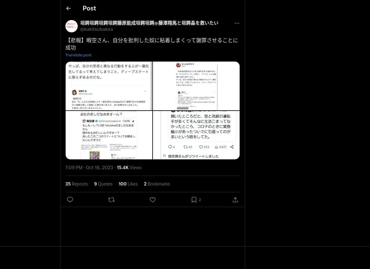 取得元URL: https://x.com:443/kakitsubakira/status/1714584512133521546