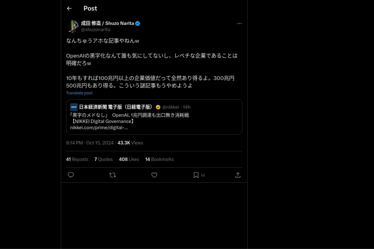 https://x.com:443/shuzonarita/status/1846147527219073205