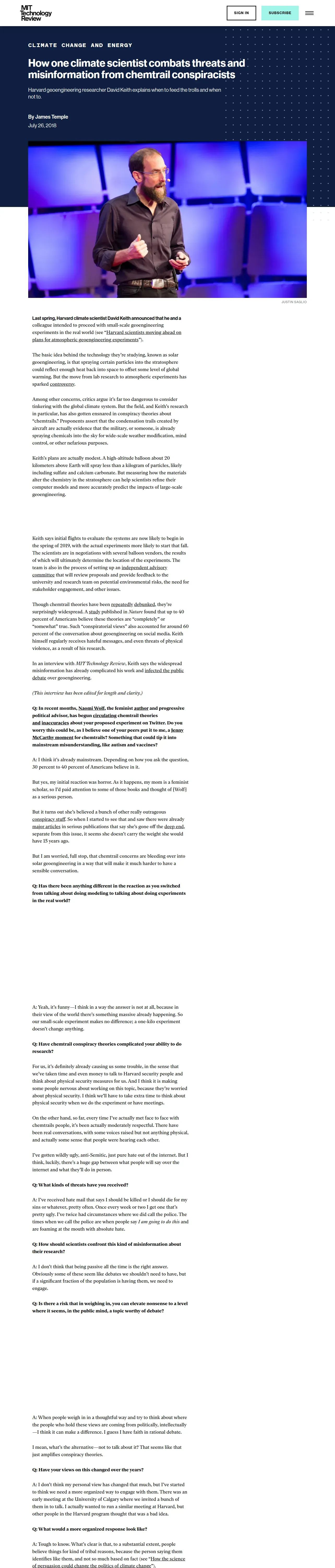 https://www.technologyreview.com:443/2018/07/26/240379/how-one-climate-scientist-combats-threats-and-misinformation-from-chemtrail-conspiracists/