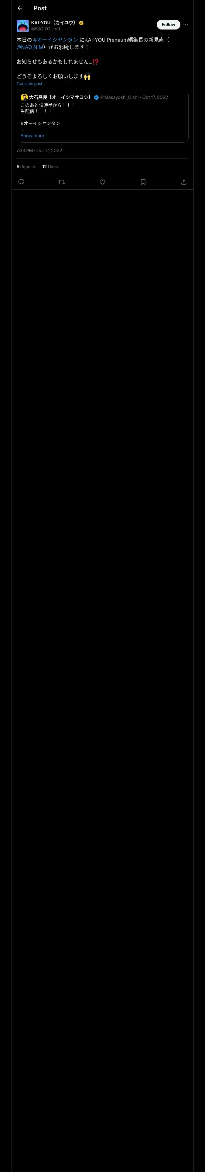 https://x.com:443/KAI_YOU_ed/status/1581956580102516737