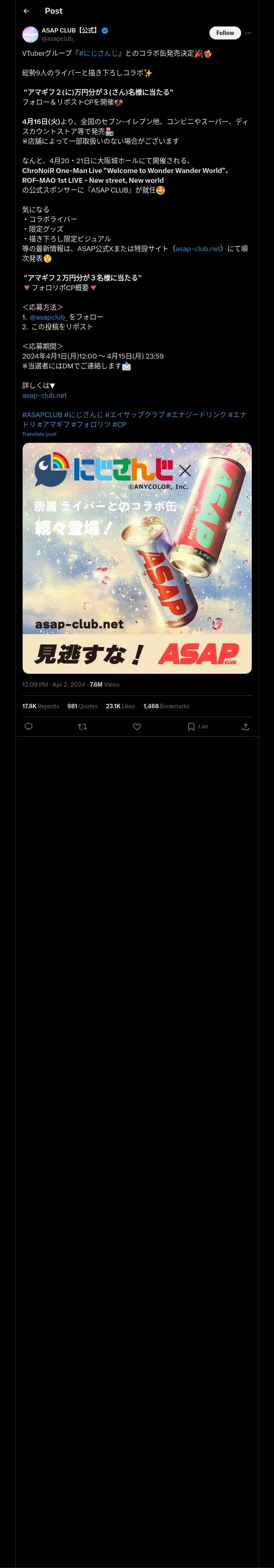 取得元URL: https://x.com:443/asapclub_/status/1774997644810780751
