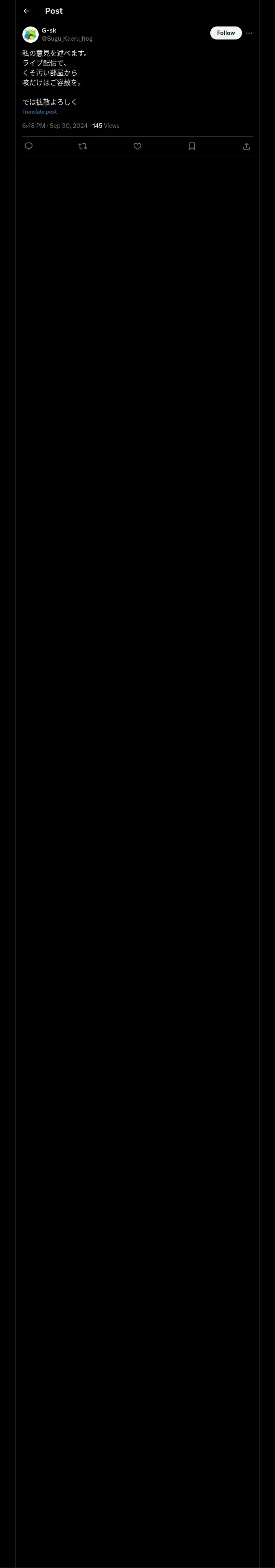 https://x.com:443/Sugu_Kaeru_frog/status/1840690192463929846