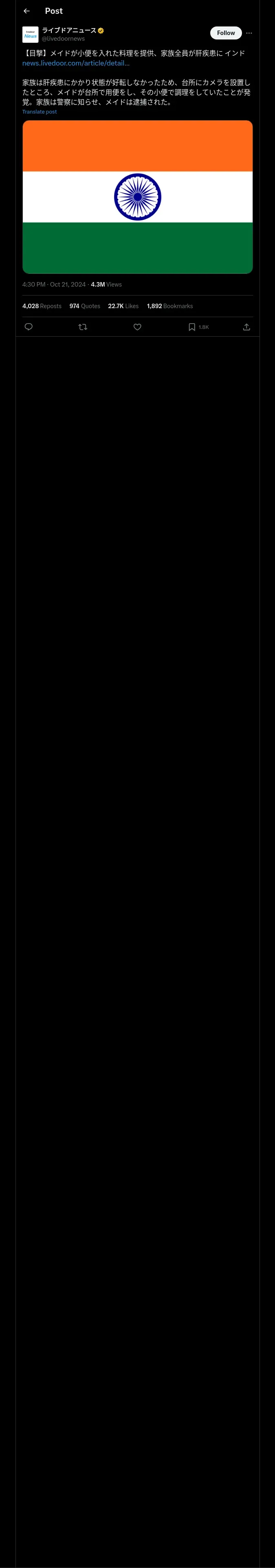 https://x.com:443/livedoornews/status/1848265463471423664