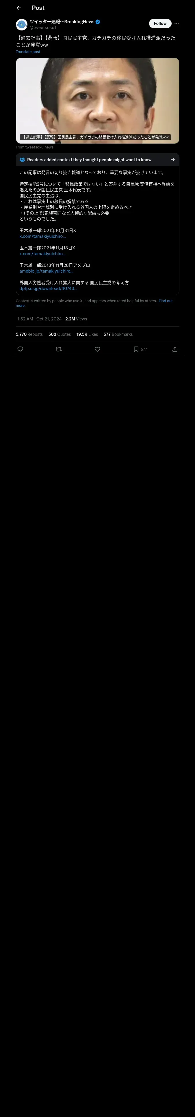 取得元URL: https://x.com:443/tweetsoku1/status/1848195536702374385