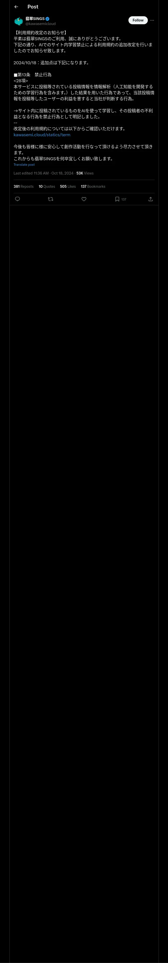 取得元URL: https://x.com:443/kawasemicloud/status/1847104318517993849