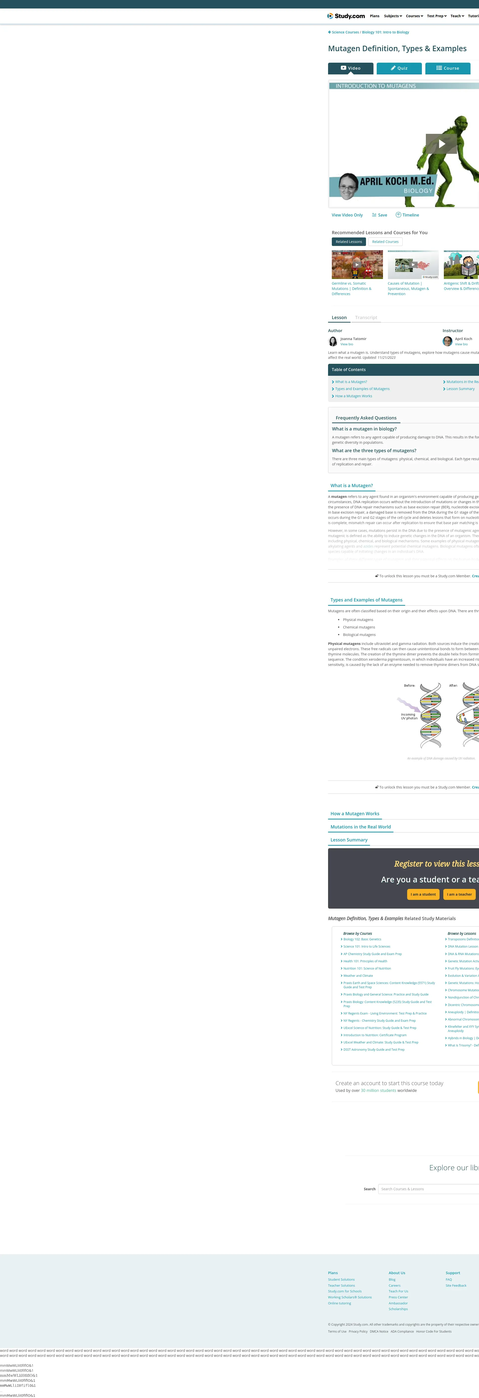 取得元URL: https://study.com:443/academy/lesson/mutagens-how-the-environment-affects-mutation-rates.html