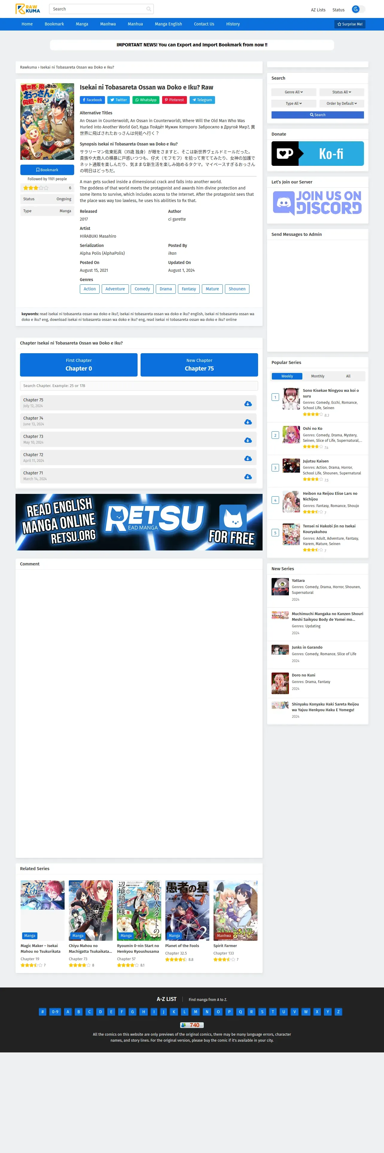 https://rawkuma.com:443/manga/isekai-ni-tobasareta-ossan-wa-doko-e-iku/